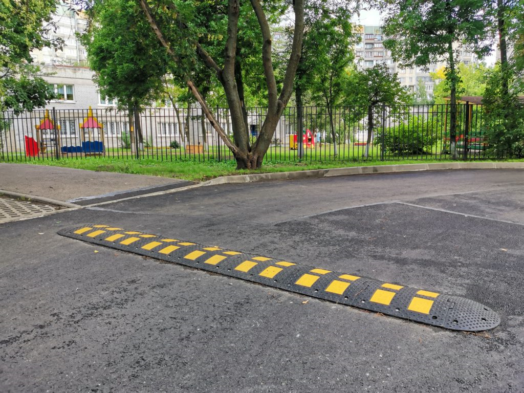 - Для временного использования, например, на период проведения дорожных работ или сезонного ограничения скорости, предпочтительнее будут неровности из резины, их проще демонтировать и переустановить.