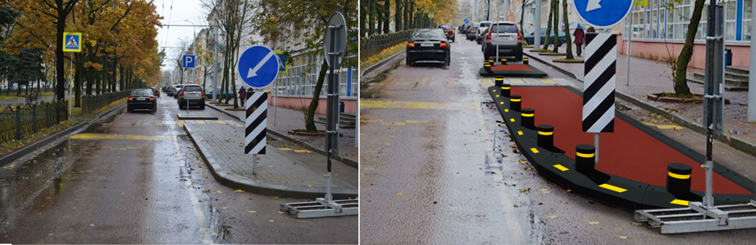 Наши резиновые колесоотбойники, установленные по окружности малого кольца не дадут проехать через кольцо, срезать «уголок», а точнее сектор и заставят водителя проехать по кругу, сбросив скорость, как и было задумано.